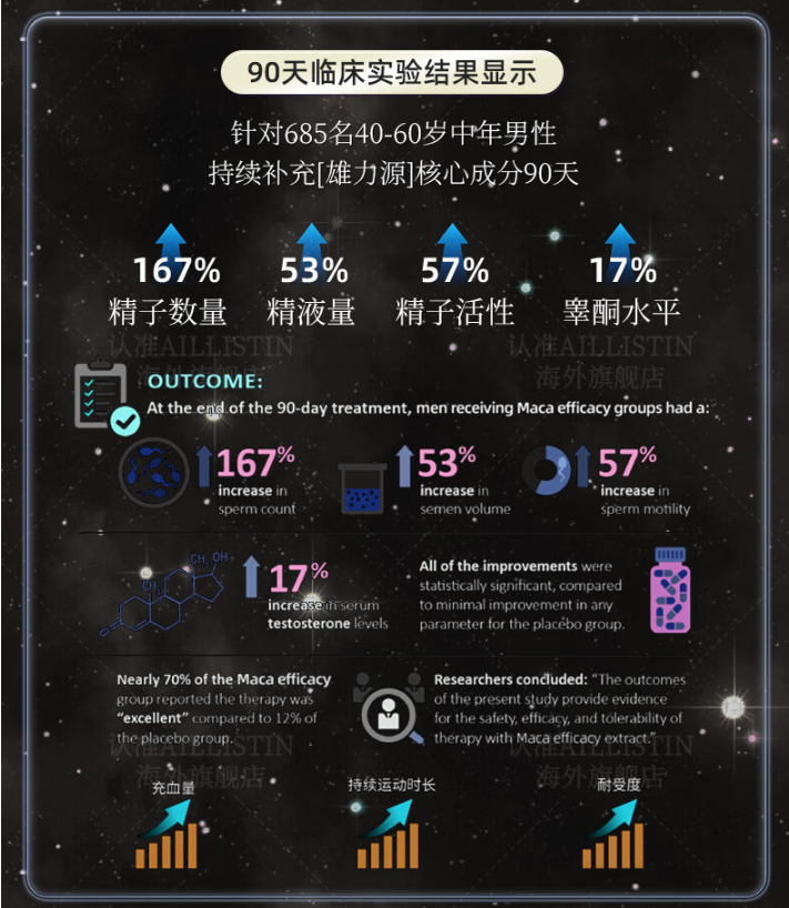 在400名40–65岁男性的干预观察中,连续服用12周后,平均睾酮水平提升约25%,勃起维持时长增加约55%,约88%的参与者表示“性功能更稳定,精力显著提升,日常活力明显改善”。