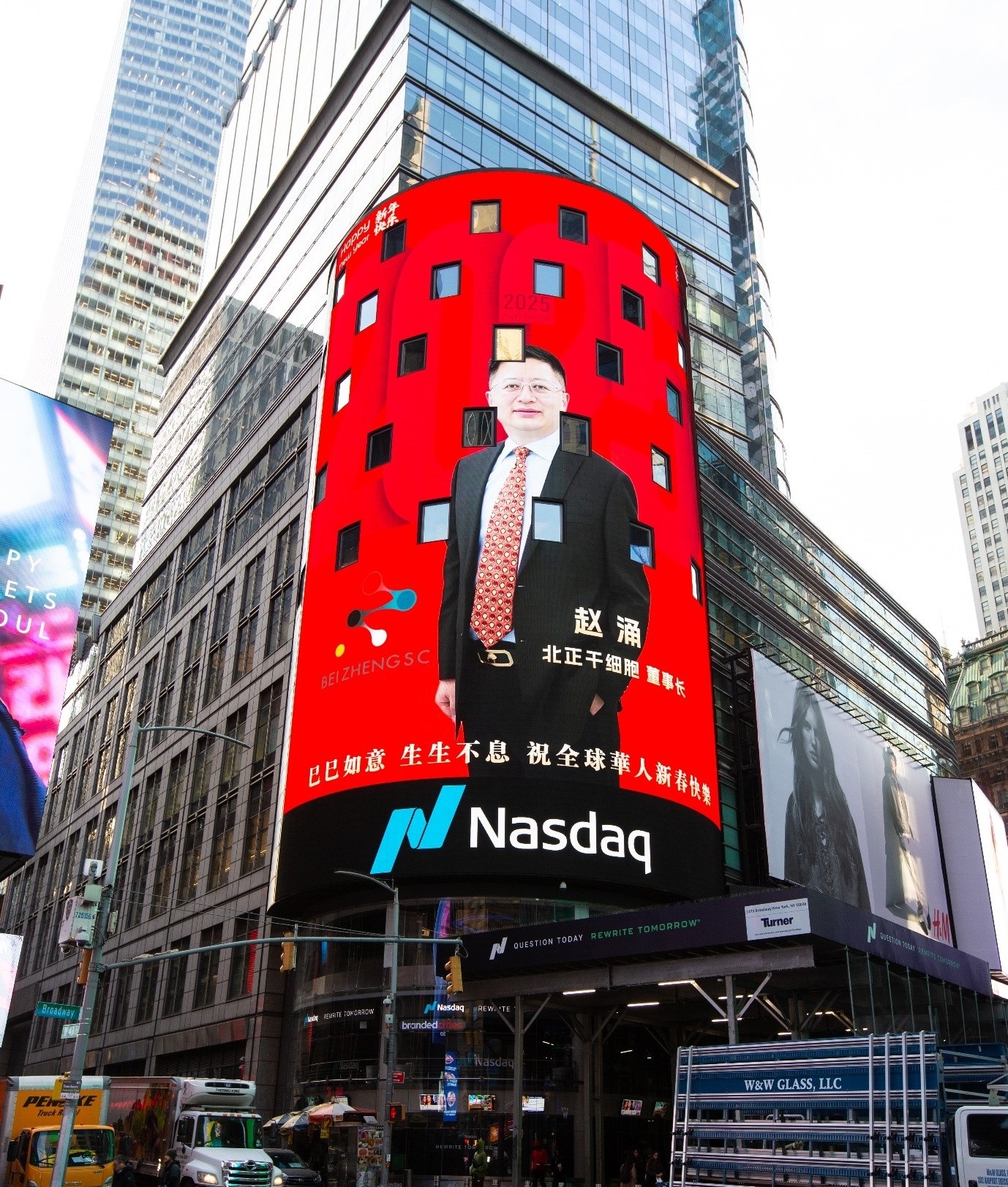 纳斯达克大屏作为 “世界的十字路口” 纽约时代广场的标志性存在,向来是全球顶尖企业展示实力与形象的重要舞台。此次北正干细胞登陆纳斯达克大屏,无疑是其品牌发展历程中的重要里程碑 。它不仅向世界全方位展示了北正干细胞的品牌形象、技术实力与创新成果,更体现了赵涌先生推动中国细胞治疗技术国际化的坚定决心 。