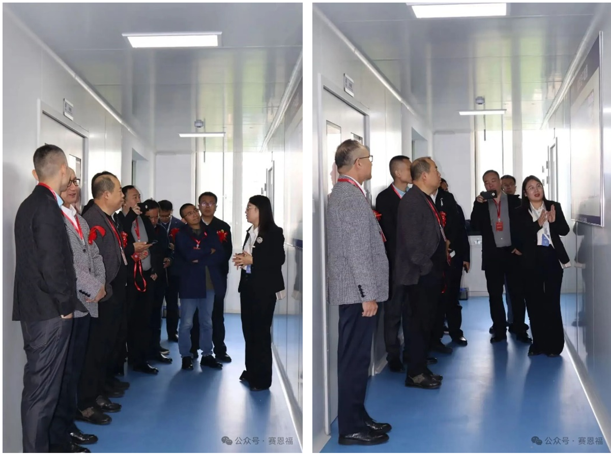 随后,参观队伍前往三楼产研中心。陈总现场讲解组织细胞库实验室的运作细节、研发中心的高端设备配置及关键技术流程,每一个环节的专业解读,都让嘉宾们深刻感受到赛恩福的科研底蕴与创新能力。