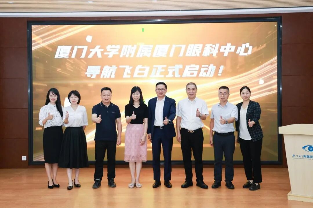集团领导赖玮琼、陈凤国,厦门眼科中心业务副院长张广斌教授、总经理姚郑玲玲,强生眼力健中国区总经理陈彪等人共同按下开机键,标志着导航飞白技术正式在厦门眼科中心投入临床使用。